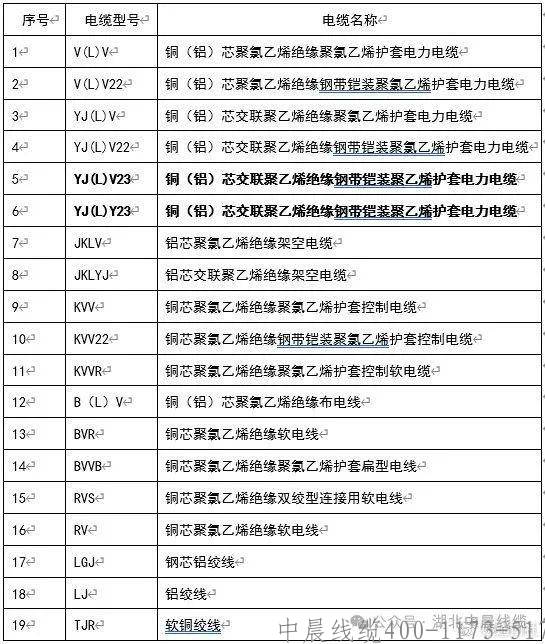 下表是電線電纜常用型號及名稱: